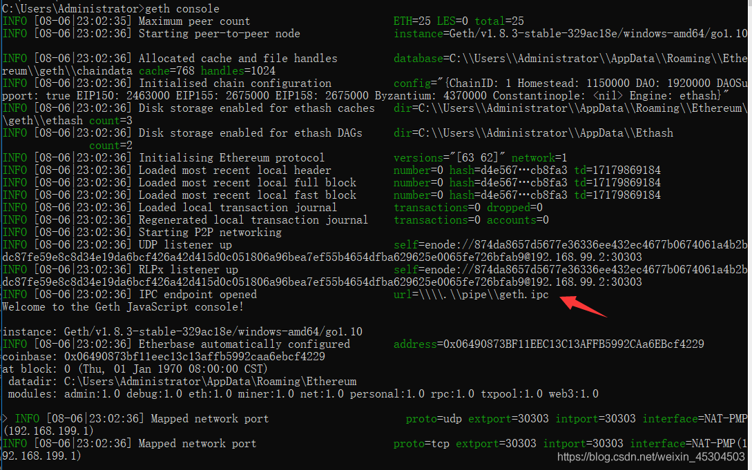• 获取挖矿地址:eth.coinbase 默认第一个创建的账户