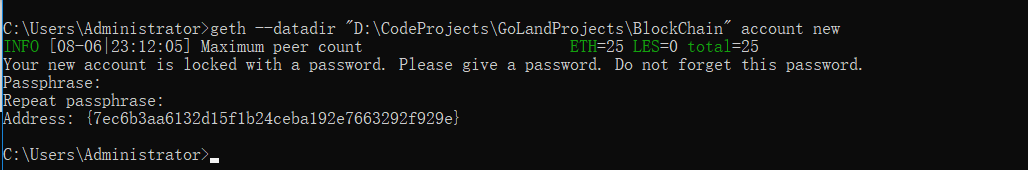 –datadir:区块数据文件夹 ,如果不指定的话,就是上面的那个在C盘的地址。