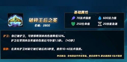 2:装备效果是你已被护卫,可以使即将到来的伤害降低百分之五十,护卫在受到来自英雄的伤害后可以存留1.5秒;