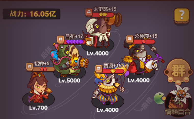 1、今日公演阵容推荐:公孙瓒、贾诩、太史慈、吕布、貂蝉,按照1-5号位排列,图中布阵阵容中的星级不作为参考