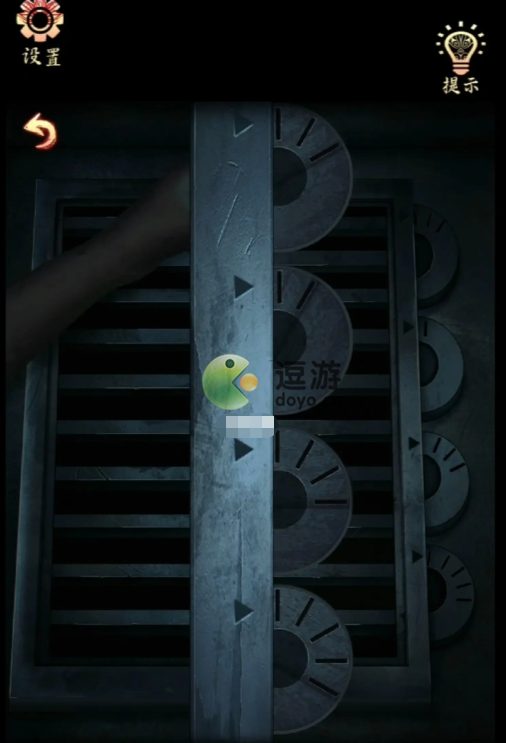 按红色按钮得到叶子方向信息【右左左右左】解开戏台旁栏杆[看的是亮灯第几行第几个不看亮灯顺序]得到【滑轮】放入鼓架下面,移动到通风口