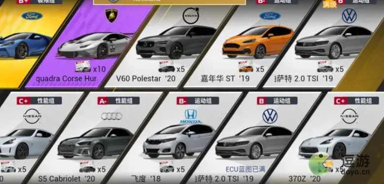 6、幸能组的金车基本都不错,本田、兰博基尼、保时捷、奥迪、路特斯。幸能组紫车能玩的不少。