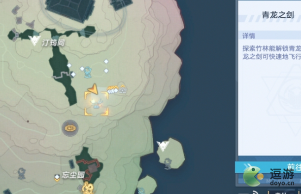 3、这一系列任务做完后,那个青龙之剑就激活了,用它能飞到跳跃挑战的平台上。